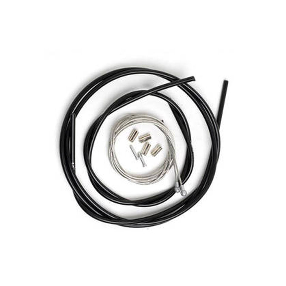 | Sharp braking is key in tackling sharp corners and fast descents with confidence, and the quality of your brake cables can have almost as much of an influence as your choice of brakes and levers. Keep your brakes sharp with these super-slick brake cables. Key Features: Complete top-of-the-range brake cable set designed to suit Dura-Ace 9000 brakes. Fitting new brakes or completely overhauling your brake cabling couldn't be easier - everything you need in one pack. Includes 1.6 mm Polymer coated inner wires (1 x 2000 mm, 1 x 1000 mm), and SLR outer casing for a complete bike (1 x 1800 mm, 1 x 800 mm), and all end caps. Polymer coated stainless steel inner wire leaves a smooth surface for low friction and reduced sliding resistance providing a lighter quicker braking operation. Outer casing is lubricated internally along its length with low-friction silicone grease to reduce cable friction. SLR casing uses a special spiral wound construction that is axially stiff yet can be bent around handlebar curves. The outer casing is lined with a hard polymer sheath to keep its round shape to assist with the smooth operation of the inner wire.